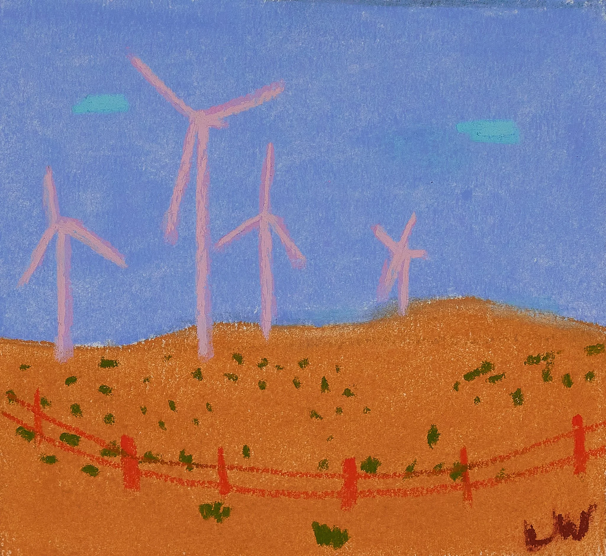 Towering Windmills Color Study, Lara Wallace, Soft Pastel on paper, 5 x 5 inches
